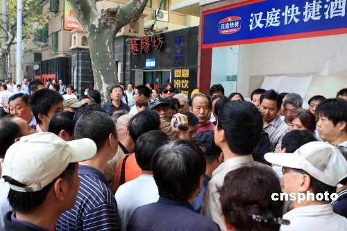 10月20日,眾多上海市民聚集在上!案咴骸边呴T襄陽路上,等待“楊佳襲警案”的審判。當(dāng)日上午,“楊佳襲警案”在上海市高級人民法院第五法庭繼續(xù)二審,法庭宣布駁回上訴,維持原判。中新社發(fā) 潘索菲 攝