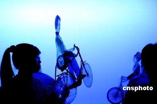 10月20日,北京老舍茶館內(nèi)表演的皮影戲受到中外來賓的喜愛。當(dāng)日,文化部授予老舍茶館“國家文化產(chǎn)業(yè)示范基地”在店內(nèi)揭牌。中新社發(fā) 廖攀 攝