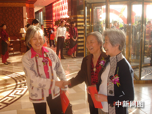 我國首位女子乒乓球世界冠軍邱鐘慧(中)與原毛澤東主席機(jī)要秘書張玉鳳(左)出席揭牌儀式。作者:韓凱