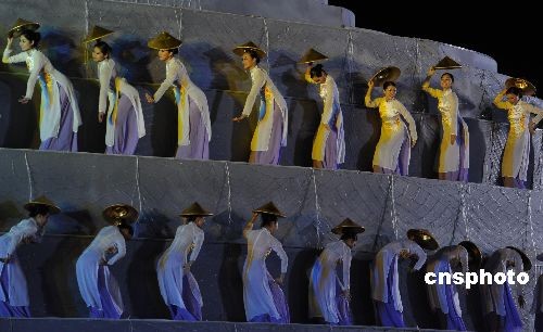 演員用舞蹈表現(xiàn)東盟成員國(guó)越南的鄉(xiāng)村之美。中新社發(fā) 蔣雪林 攝