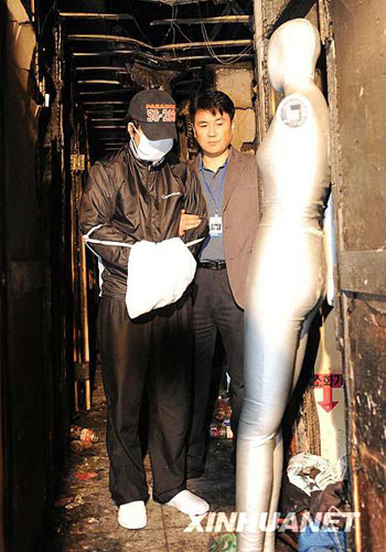 10月23日上午,韓國(guó)警方與20日在首爾某旅館制造縱火行兇事件的嫌犯鄭某(戴口罩者)到案發(fā)現(xiàn)場(chǎng)取證。鄭某在20日的縱火行兇事件中造成6死7傷,有三名中國(guó)婦女被鄭某殺害,另有三名中國(guó)婦女受傷。新華社/韓國(guó)紐西斯通訊社