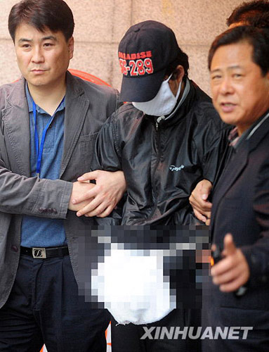 10月23日上午,韓國(guó)警方與20日在首爾某旅館制造縱火行兇事件的嫌犯鄭某(戴口罩者)到案發(fā)現(xiàn)場(chǎng)取證。新華社/韓國(guó)紐西斯通訊社