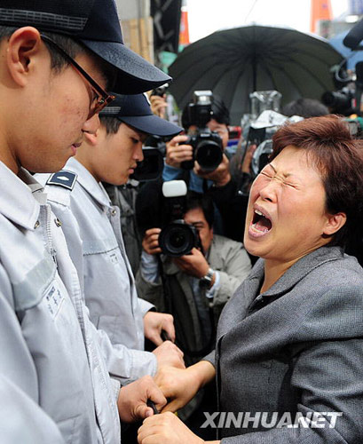 10月23日,韓國(guó)首爾某旅館縱火行兇案遇難者家屬在案發(fā)現(xiàn)場(chǎng)外悲痛不已。新華社/韓國(guó)紐西斯通訊社