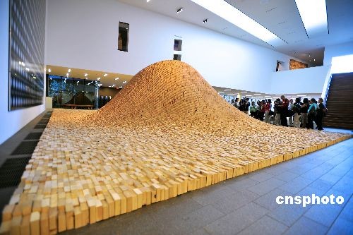 圖為林瓔的《2x4 風(fēng)景》,該作品長36英尺,寬53英尺,高10英尺,重約30噸,由4萬塊木板構(gòu)成,10個工人用了15個工作日建成。中新社發(fā) 陳鋼 攝