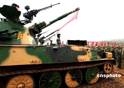 參加解放軍“前鋒-2008” 演習(xí)的濟(jì)南軍區(qū)某裝甲旅部隊(duì),10月24至28日在確山合同戰(zhàn)術(shù)訓(xùn)練基地,進(jìn)行進(jìn)行實(shí)兵、實(shí)彈訓(xùn)練。中新社發(fā) 宋吉河 攝