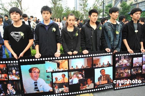 上海師范大學(xué)謝晉影視藝術(shù)學(xué)院的學(xué)生含淚送別恩師。中新社發(fā) 湯彥俊 攝