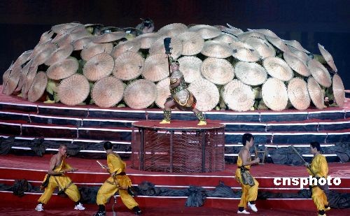 幕式上,南少林武術(shù)表演威震全場(chǎng)。中新社發(fā) 王東明 攝