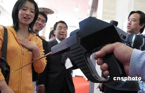 10月28日,“第十二屆國際消防設(shè)備技術(shù)交流展覽會”在北京全國農(nóng)業(yè)展覽館開幕。國際消防協(xié)會聯(lián)盟、世界義勇消防聯(lián)盟,及美國和日本消防協(xié)會、德國消防促進(jìn)會等國際知名消防組織參展。圖為曾在中國汶川地震中立下汗馬功勞的生命探測儀器,該儀器可探測出500米內(nèi)的人體生命,對人體心臟產(chǎn)生的微電磁波十分敏感,其探頭有自動尋的功能。中新社發(fā) 鄒憲 攝