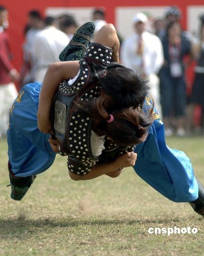 10月31日,第六屆全國農(nóng)運會“搏克”表演賽在福建泉州僑鄉(xiāng)體育場舉行。搏克是蒙古語,意為摔跤,同時含有結(jié)實、團結(jié)、持久之意。搏克是目前世界上流行的各種摔跤運動中完整保持自己古老民族特色的一項直接對抗性競技體育運動。