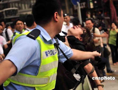 游行中部分人情緒激動,亦有人途中暈倒。中新社發(fā) 譚達明 攝