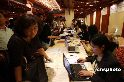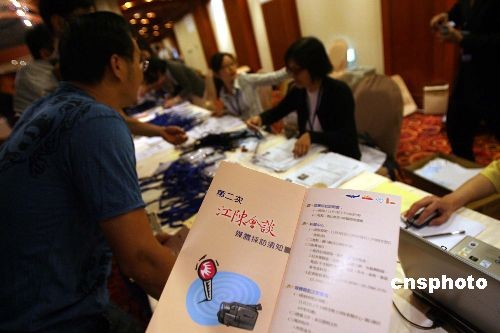 十一月二日,大批媒體記者在臺北圓山飯店新聞中心領取采訪證件。據(jù)悉,兩岸三地及海外的一百三十八家媒體共一千零四十七名記者報名,獲準采訪的記者有五百七十四名。中新社發(fā) 洪少葵 攝