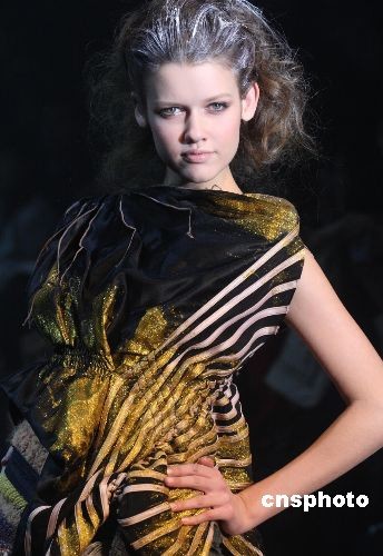 圖為模特展示2009春夏《長江系列》高級時裝發(fā)布新款。中新社發(fā) 錢興強 攝