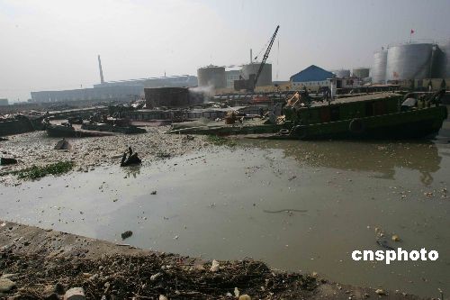 11月13日上午7點55分,?吭谡憬『贾菔杏嗪紖^(qū)塘棲鎮(zhèn)榮圣化工碼頭的一艘裝有120噸二氧化碳的船只發(fā)生爆炸。事故造成兩人死亡三人受傷,另外一艘裝有濃硫酸的船只發(fā)生泄漏。中新社發(fā) 林云龍 攝