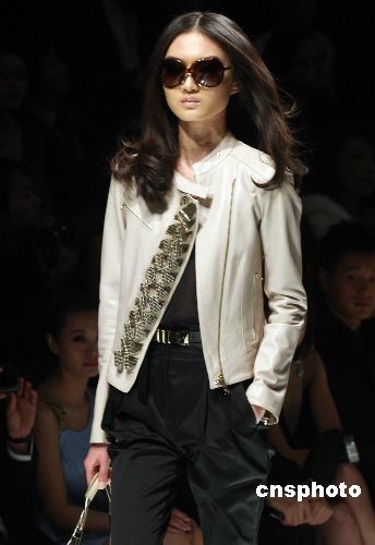 11月13日晚,意大利某著名時(shí)裝品牌在北京舉行中國(guó)的首場(chǎng)時(shí)裝發(fā)布會(huì)。圖為模特展示新款時(shí)裝。新社發(fā) 錢興強(qiáng) 攝