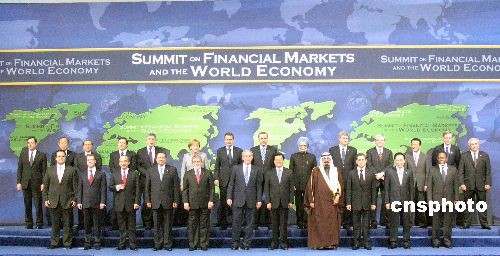 二十國集團(tuán)領(lǐng)導(dǎo)人金融市場和世界經(jīng)濟(jì)峰會15日在美國首都華盛頓舉行,中國國家主席胡錦濤出席會議并發(fā)表重要講話,圖為各與會領(lǐng)導(dǎo)人在會前合影。中新社發(fā) 齊彬 攝