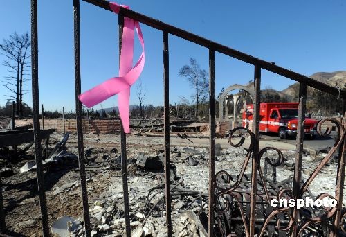 十一月十八日,洛杉磯北部希爾瑪市的一個(gè)居民區(qū)在大火中幾乎被焚毀,整個(gè)社區(qū)六百零八間住宅中的四百八十間蕩然無(wú)存。中新社發(fā) 張煒 攝