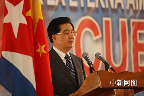 中國國家主席胡錦濤,十八日在古巴國務(wù)委員會(huì)主席勞爾·卡斯特羅的陪同下,來到古巴哈瓦那大學(xué)塔拉拉分校,看望中國留學(xué)生。