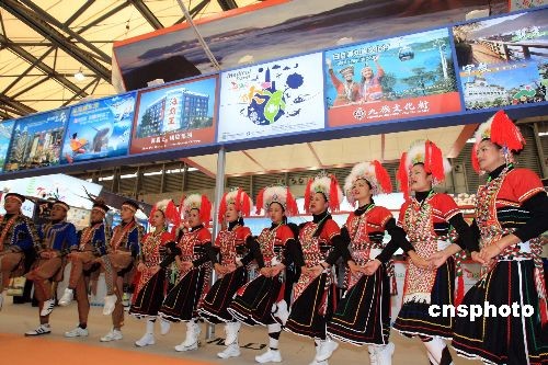 11月20日,在上海舉行的“二00八中國國際旅游交易會”上,臺灣少數(shù)民族歌舞加上臺灣旅游主題展區(qū),成為交易會上精彩亮點(diǎn)。中新社發(fā) 潘索菲 攝