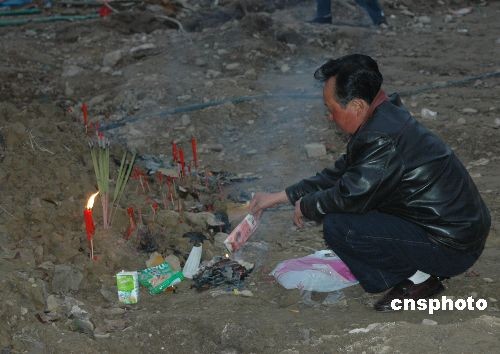 在四川雅江縣務(wù)工的楊先生,每月都會到北川中學的廢墟前祭奠在“512”大地震遇難的女兒。圖為11月21日,楊先生星夜兼程從雅江趕赴北川,為17歲的女兒燒去思念。中新社發(fā) 肖龍聯(lián) 攝