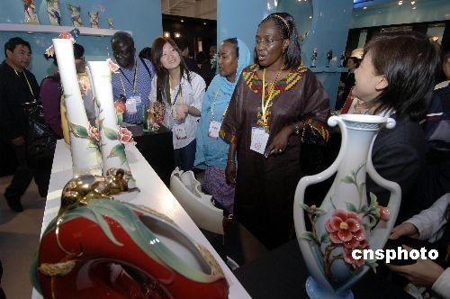 十一月二十七日上午,非洲客人在廈門文化藝術(shù)中心臺灣“法藍瓷”工藝品展館里流連忘返。中新社發(fā) 王東明 攝