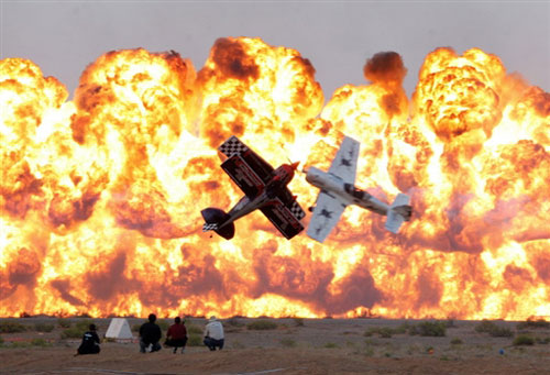最牛的飛行——1月27日,在科威特國(guó)際機(jī)場(chǎng)舉行的艾因國(guó)際特技飛行展上,美國(guó)的TinStix飛行隊(duì)在進(jìn)行表演。