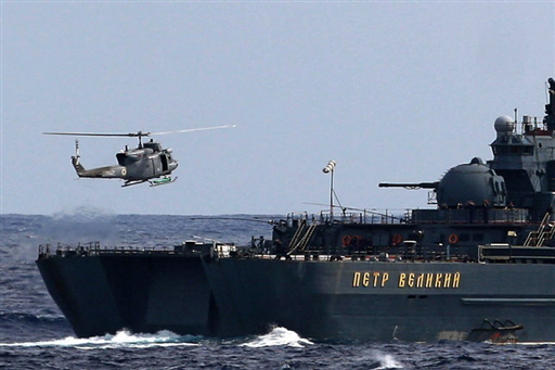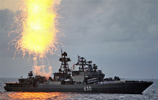 12月2日,在委內(nèi)瑞拉境內(nèi)的加勒比海域,俄羅斯“恰巴年科海軍上將”號(hào)大型反潛艦與“彼得大帝”號(hào)核動(dòng)力導(dǎo)彈巡洋艦參加委內(nèi)瑞拉和俄羅斯舉行的海上聯(lián)合軍演。 委俄兩國(guó)于12月1日至3日在加勒比海舉行代號(hào)為“委俄2008”的聯(lián)合軍事演習(xí)。