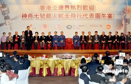 十二月七日,神舟七號載人航天飛行代表團(tuán)在香港出席工商界為代表團(tuán)特設(shè)的午宴。代表團(tuán)團(tuán)長張建啟及太空人翟志剛、劉伯明和景海鵬等出席,張建啟并在臺上發(fā)言。