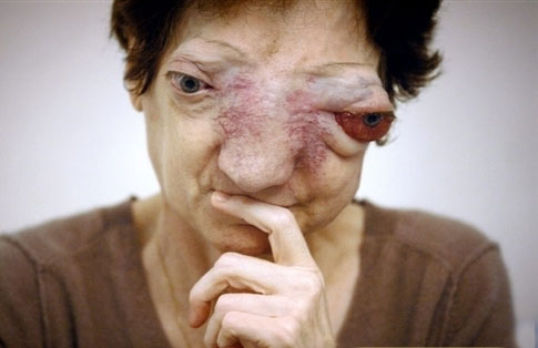 2008年2月26日,法國(guó)東部第戎市,身患罕見(jiàn)惡性腫瘤疾病——嗅神經(jīng)母細(xì)胞瘤(ENB)的法國(guó)婦女香塔爾·賽比爾拍攝照片。