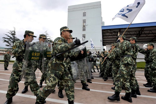 防暴隊員在進行防暴課目訓(xùn)練