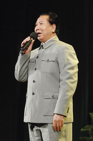 湘鄉(xiāng)人王金生是首個(gè)登臺(tái)進(jìn)行表演的特型演員,他一上臺(tái)就模仿毛澤東在開(kāi)國(guó)大典時(shí)的經(jīng)典講話。“同志們好——”,王金生的“主席”口音一出,立馬將現(xiàn)場(chǎng)氣氛推向高潮,“主席好!”臺(tái)下觀眾熱情的配合,“人民萬(wàn)歲——”,“毛主席萬(wàn)歲!”作為“開(kāi)場(chǎng)戲”,王金生成功地帶動(dòng)了現(xiàn)場(chǎng)觀眾,達(dá)到很好的互動(dòng)效果。