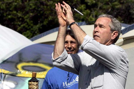 布什在職期間的“尷尬”瞬間很多,這是他2006年4月27日在對卡特里娜颶風(fēng)災(zāi)區(qū)視察時造訪了密西西比州的一個加油站,他手下工作人員當(dāng)時向他扔了一支白色的圓珠筆以便讓他為一名志愿者的郵箱提詞,但布什總統(tǒng)卻未能接住筆,他的臉部被圓珠筆擊中。