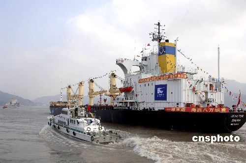 福建“金海緣”號(hào)將成首艘抵達(dá)臺(tái)北散貨輪。中新社發(fā) 王東明 攝
