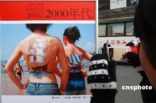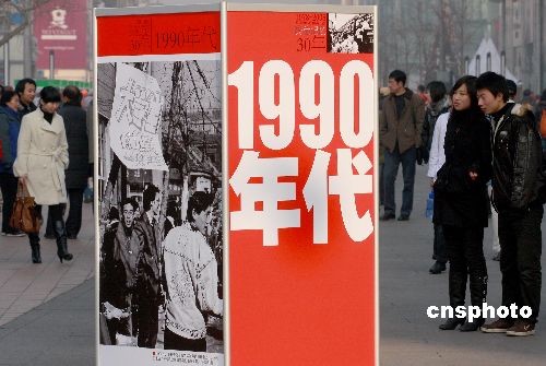 12月16日,紀(jì)念改革開放30周年全國(guó)攝影大展在北京王府井大街開幕。本次展覽由“民生記憶30年”、“城鎮(zhèn)記憶30年”、“家庭記憶30年”3部分組成,共展出攝影作品近800幅。其中“民生記憶30年”部分將中國(guó)自1978年以來的30年變革脈絡(luò),用百姓的視角、平凡的瞬間加以詮釋與展現(xiàn),還原質(zhì)樸的生活。中新社發(fā) 鄭雄增 攝