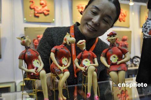 12月18日,第三屆中國北京國際文化創(chuàng)意產(chǎn)業(yè)博覽會(huì)在中國國際展覽中心開幕。圖為由純手工法軟陶教育創(chuàng)始人趙春香創(chuàng)作的生肖作品。中新社發(fā) 潘旭臨 攝