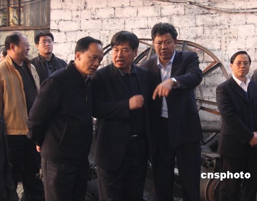 國家煤監(jiān)局副局長付建華(左二)在湖南省漣源市伏口鎮(zhèn)掛子巖煤礦指揮了解和救援工作。