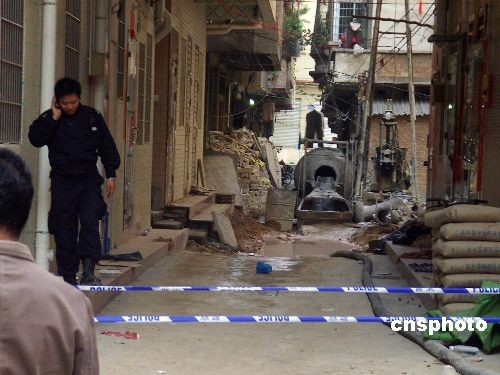 12月19日下午4時(shí)15分,廣州市白云區(qū)夏茅村沙園坊因路面塌陷導(dǎo)致兩棟房屋下沉6米,其中一棟倒塌,周圍10余棟房屋傾斜或出現(xiàn)裂縫。目前,有關(guān)部門對以事故現(xiàn)場為中心、周圍約100米為半徑的區(qū)域進(jìn)行封鎖,1000多名居民被疏散出來。中新社發(fā) 劉君鳳 劉蛟 攝