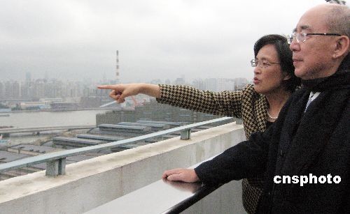 十二月二十一日,正在上海參加第四屆兩岸經貿文化論壇的中國國民黨主席吳伯雄造訪上海世博局,登高俯瞰2010年上海世博會園區(qū)工地。中新社發(fā) 許曉青 攝