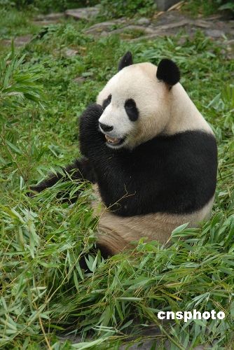 2008年12月,團(tuán)團(tuán)!皥A圓快來呀,我發(fā)現(xiàn)竹子啦,一般人咱不告訴他!”。中新社發(fā) 羅小韻 攝