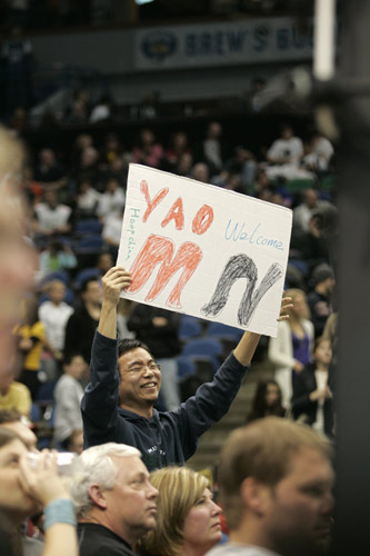 姚易大戰(zhàn)自然吸引了眾多華人球迷的關(guān)注,籃網(wǎng)的主場的球迷打出歡迎姚明的標(biāo)語。