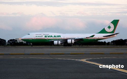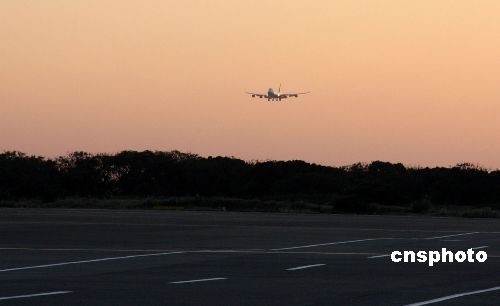 臺(tái)灣長(zhǎng)榮航空運(yùn)送大陸贈(zèng)臺(tái)大熊貓“團(tuán)團(tuán)”、“圓圓”的專(zhuān)機(jī),在晚霞的映襯下平穩(wěn)順利降落在臺(tái)灣桃園機(jī)場(chǎng)。