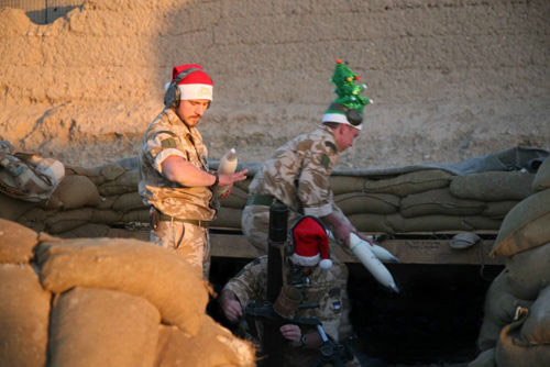 塔利班襲擊,英軍士兵來(lái)不及把圣誕帽換成鋼盔就投入了戰(zhàn)斗。