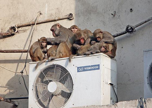 在空調(diào)機(jī)上的一群猴子,入圍“動(dòng)物舒適獎(jiǎng)”的候選名單。