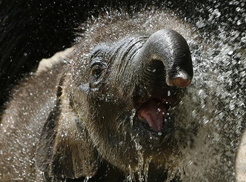 一頭泰國(guó)小象,贏(yíng)得“濕漉漉的野生動(dòng)物”獎(jiǎng)。