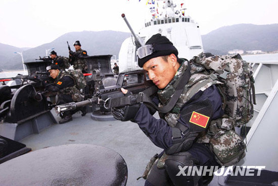 組圖:中國(guó)海軍特戰(zhàn)隊(duì)員出征前最后演練(2)