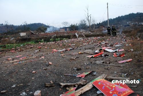圖:湖南一無證鞭炮廠發(fā)生爆炸 2人當(dāng)場死亡(2)