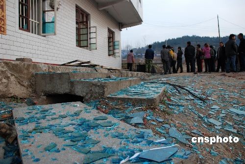 離爆炸現(xiàn)場100米外的民房受沖擊波影響。中新社發(fā) 余致力 攝