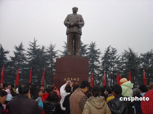 12月26日清晨,在韶山毛澤東廣場(chǎng),從中國(guó)各地趕來的民眾懷著對(duì)毛主席的思念和對(duì)未來的祝福,齊唱《東方紅》紀(jì)念毛澤東誕辰115周年。中新社發(fā) 肖前輝 攝