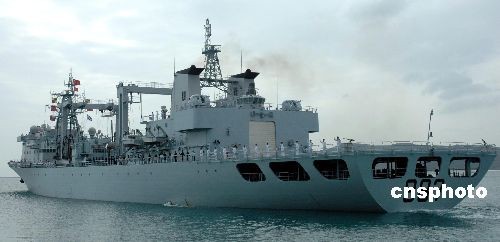 圖為“微山湖”號綜合補給艦緩緩駛離三亞軍港。中新社發(fā) 王辛莉 攝