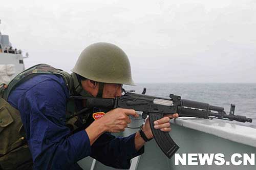 12月27日上午,“武漢”號(hào)官兵進(jìn)行了航海演練。主要項(xiàng)目包括模擬射擊、海上目標(biāo)搜索等。