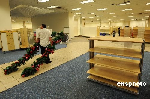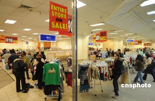 當(dāng)?shù)貢r(shí)間十二月二十七日,洛杉磯附近的一家Mervyns百貨店進(jìn)入破產(chǎn)關(guān)門前的最后一天大甩賣,全場(chǎng)商品一律一折甩賣,連貨架也在甩賣之列,眾多消費(fèi)者前來(lái)?yè)毂阋。受美?guó)經(jīng)濟(jì)衰退的影響,擁有五十九年歷史的美國(guó)老牌連鎖百貨公司Mervyns今年夏天宣布破產(chǎn)倒閉,由于沒(méi)有找到接手的公司,最終該公司宣布旗下一百四十九家商店進(jìn)行清貨銷售,然后關(guān)門停業(yè)。中新社發(fā) 張煒 攝